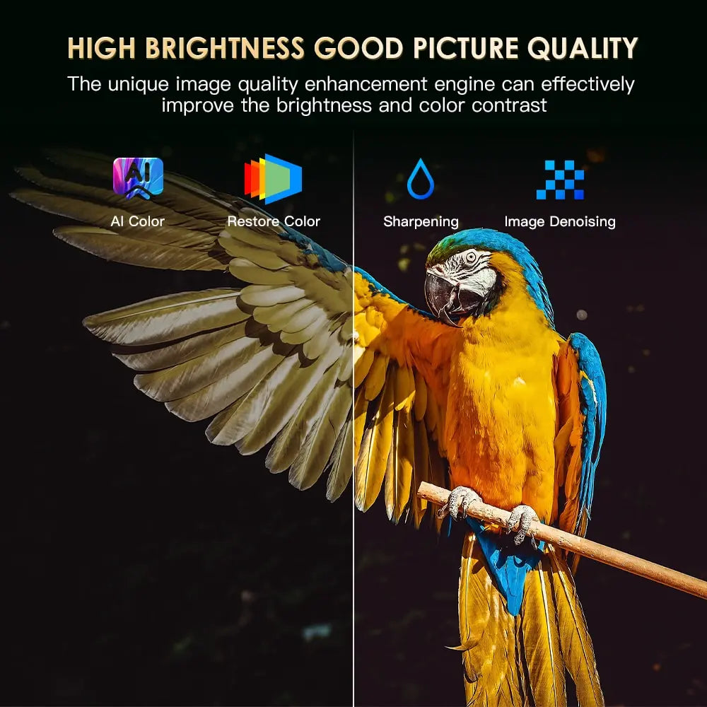 • Bluetooth Compatibility :The projector comes with Bluetooth compatibility, allowing you to connect your phone or other devices wirelessly and stream content directly from the projector.