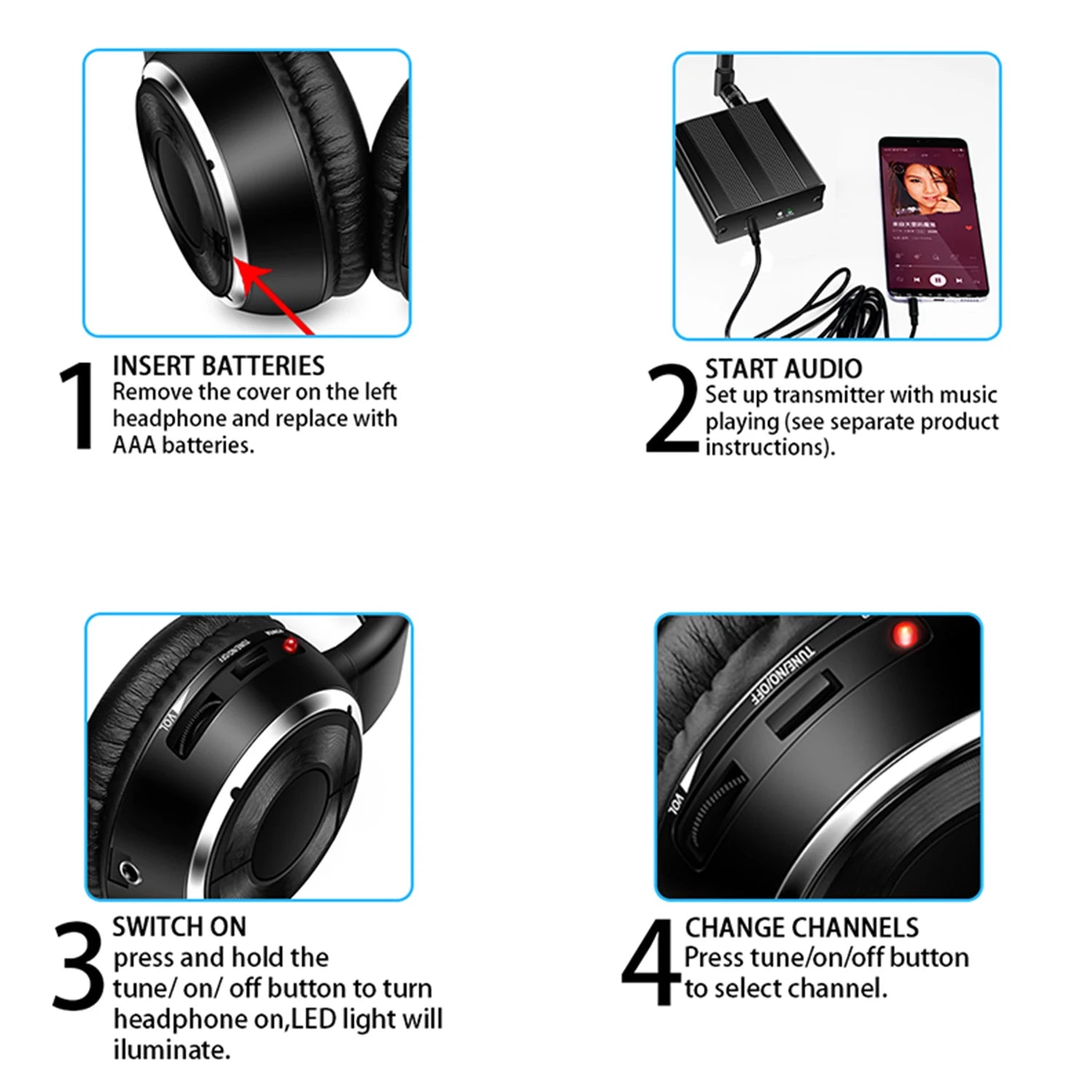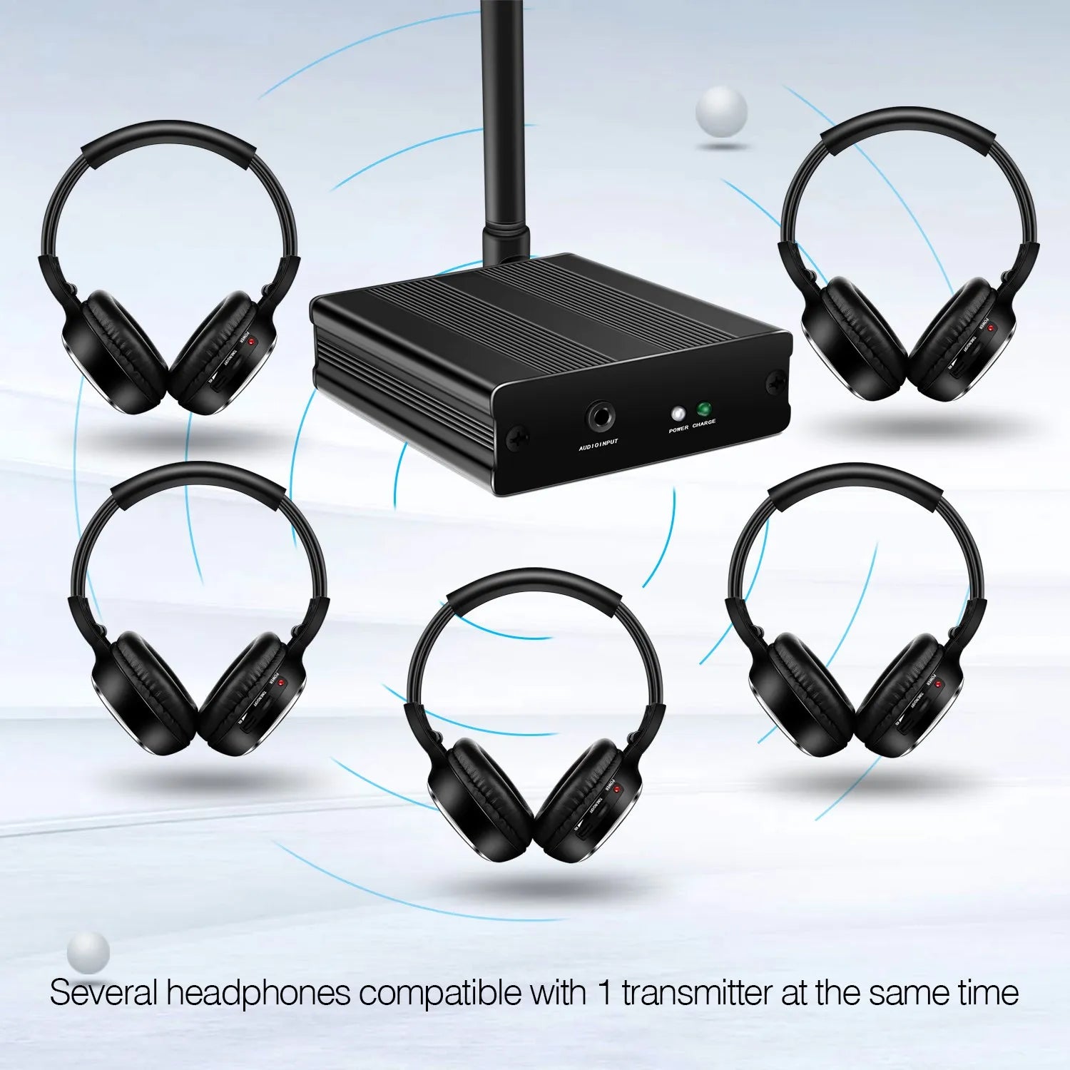2.Broadcast Audio to an Unlimited Number of Wireless Headphone Sets Use up to 3 Transmitters Simultaneously.
