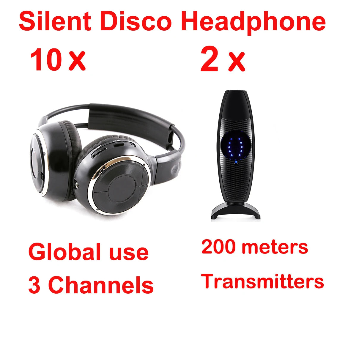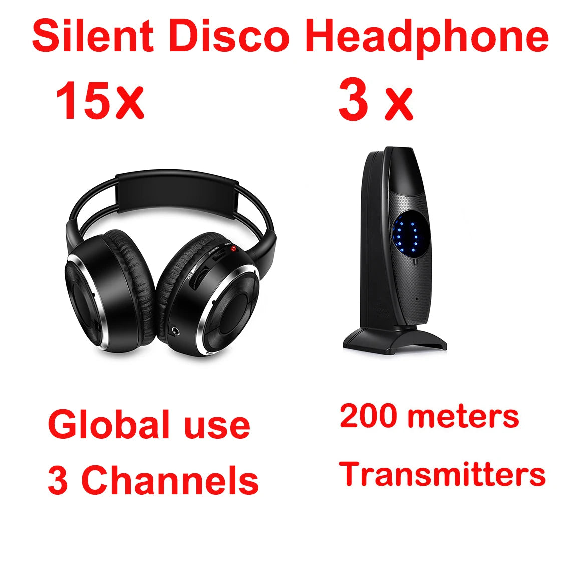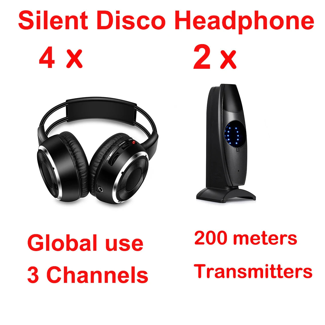 2.Broadcast Audio to an Unlimited Number of Wireless Headphone Sets Use 1 Transmitter Simultaneously. And support 3 transmitters working together by just adding transmitter.