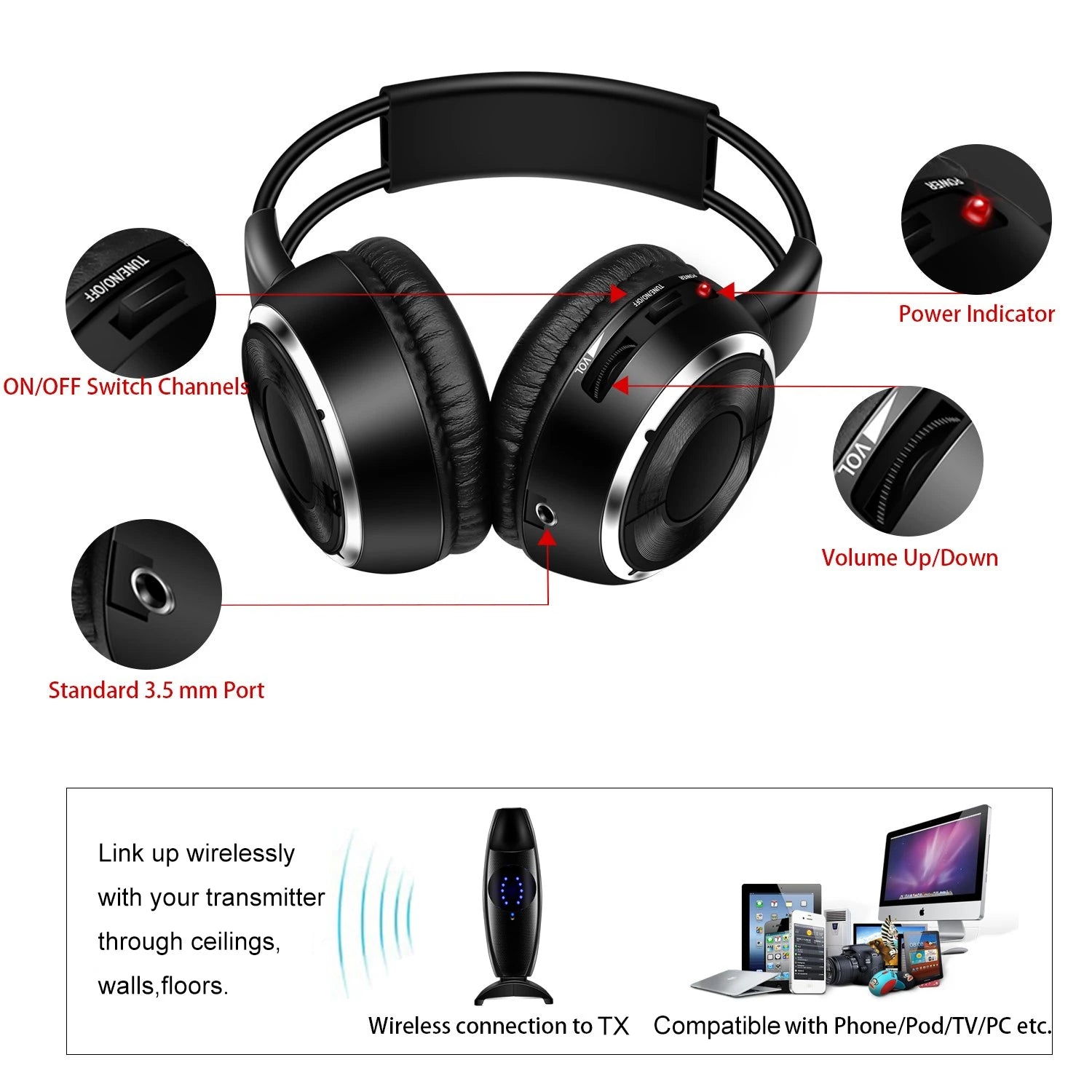 4.Headphone receiving distance: about 80m.Transmitter distance as far as 200M in vast place.